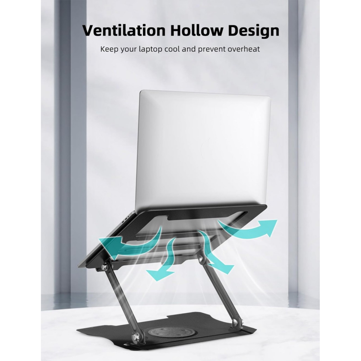 2. 360 ° rotation: It is equipped with a 360 ° rotation double axis to connect with the base, making 360 ° rotation more flexible. The computer bracket allows you to rotate your laptop to any angle.